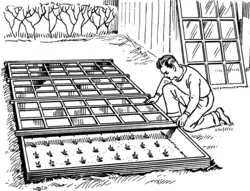 En jardinage, une mini serre, un châssis de jardinage voire une cloche en verre sont fréquemment utilisés pour faciliter la production de plants à partir de semis de différentes espèces sensibles au froid[1].