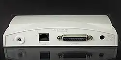 - d'une ou plusieurs connexions à des imprimantes. La plupart des serveurs d'impression disposent de connexions USB ; certains disposent également de ports parallèles. Certains serveurs d'impressions ne sont pas connectés directement par leur câble d'interface aux imprimantes. Ces dernières sont connectées via le réseau, en effet, les imprimantes professionnelles sont généralement connectées directement sur le réseau pour permettre une répartition au sein des locaux de l'entreprise.