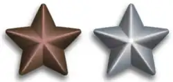 Une étoile argentée représente 5 étoiles de bronze. Elles sont disposées sur un ruban, qui compte lui-même pour une récompense additionnelle (il n'y a donc pas d'étoile sur le ruban pour une première décoration).
