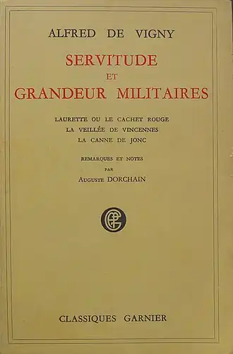 - ↑ Alfred de Vigny, Servitude et Grandeur Militaires, Paris, Librairie Gründ, 60 rue Mazarine, , p. 7 livre premier chapitre premier