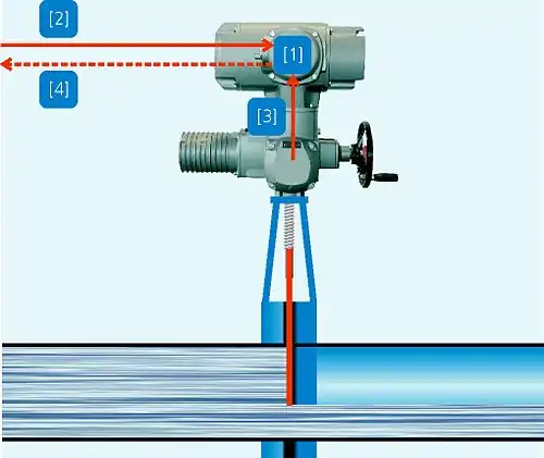 Les servomoteurs multitours servent à l'automatisation de vannes multitours. Le représentant classique est le tablier. Les exigences de base aux servomoteurs multitours sont décrits dans la norme EN ISO 5210 comme suit :