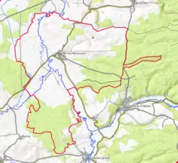 - ↑ Les ruisseaux intermittents sont représentés en traits pointillés.