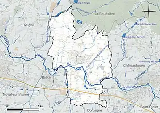 La commune est traversée d'est en ouest par la Vilaine. Ce fleuve côtier qui prend sa source à l'ouest du département de la Mayenne, et qui se jette dans l'océan Atlantique, coule au sud du bourg ; il provoque des inondations périodiquement.
