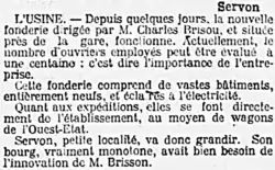 - ↑ Fonderie Brisou, puis fonderies du Pas et Brisou Réunies, actuellement fonderie de Servon, la Pampille (Servon-sur-Vilaine) sur le site de l'inventaire du patrimoine culturel en Bretagne