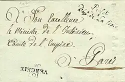 - ↑ Le Livre de poste ou Départ de Paris des courriers de la poste aux lettres sur Gallica, 1811, p. 89.
