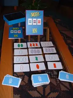 Set! est un jeu de société sous forme d'un jeu de cartes spécifique créé par Marsha Falco et auto-édité en 1991. Le jeu a été repris par F.X. Schmid en 1995 puis par Ravensburger depuis 2001.