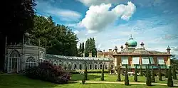 Les jardins sont l'œuvre du paysagiste Humphry Repton, dans un goût néo-Renaissance agrémenté de rocailles, de grottes mais également de fabriques de jardin orientalisantes comme le temple du Soleil et sa fontaine, le pont indien avec ses colonnes, le bassin du serpent orné d'un naja tricéphale enroulé à un tronc d'arbre, l'orangerie sur la façade sud, le jardin persan ou encore la colonne Wellington, d'inspiration indienne.