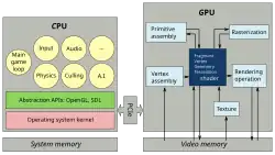 Ces shaders sont exécutés à même le processeur de traitement graphique (GPU) de la carte graphique en se plaçant dans la file de traitement et permettant ainsi des performances optimales. L'architecture des cartes n'a pas eu besoin d'évoluer, étant basée sur un modèle de traitement par flux, le calcul des shaders a trouvé sa place dans la structure globale des cartes.