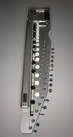 Il s’agit là d’une version électrifiée et légèrement modifiée du bulbul tarang indien. On peut constater l’absence de caisse de résonance (solid body), l’ajout de micros et d’une sortie jack ainsi que des touches de machine à écrire faisant office de clavier sur les deux chanterelles[2].