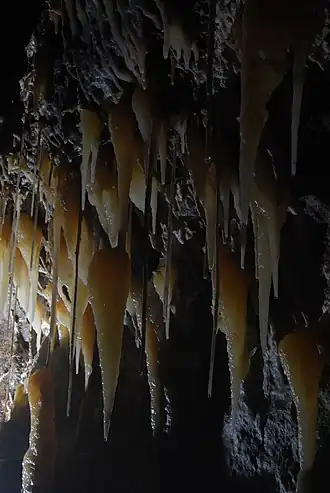 La grotte contient de nombreuses formations en calcite, avec de grandes quantités d'hélictites par endroits. Les rétrécissements rocheux sont fréquents, plusieurs parties de la grotte étant assez instables, en particulier le « passage JCP »[5].