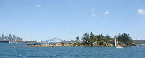 L'île a une superficie de 1,5 hectare et mesure environ 250 mètres par 100 mètres[3]. L'île fait office de base de loisirs tandis que, dès 1879, elle sert également de zone de quarantaine pour les animaux[3] et de dépôt naval jusqu'en 1975. À cette date elle est dédiée exclusivement aux loisirs et fait partie du parc national de Sydney Harbour.
