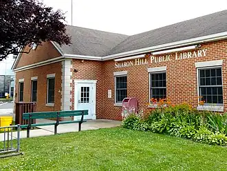 - (en) Cet article est partiellement ou en totalité issu de l’article de Wikipédia en anglais intitulé « Sharon Hill, Pennsylvania » (voir la liste des auteurs).