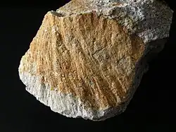 Cône de percussion dans le calcaire, provenant de l'astroblème de Charlevoix, Québec, Canada.