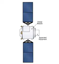 - des panneaux solaires (12,24 m2) fournissant en moyenne 0,5 kW et un système de propulsion constitué de 16 petits propulseurs de 5 newtons de poussée consommant de l'hydrazine ; ces équipements permettent au module orbital de fonctionner de manière autonome[1] :
