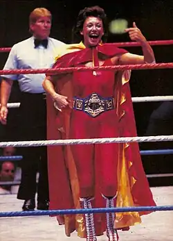 - ↑ (en) « Historique du championnat du monde féminin de l'American Wrestling Association », sur Wrestling-Titles (consulté le )