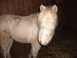 - ↑ (en) C. F. Schlotthauer et P. E. Zollman, « The occurrence of so-called "white heifer disease" in a white Shetland pony mare », Journal of the American Veterinary Medical Association, vol. 129, , p. 309-310 (lire en ligne