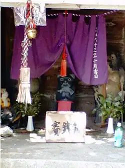 | Représentation | Un vieux tanuki portant un haori d’une couleur bleue ou violette. |