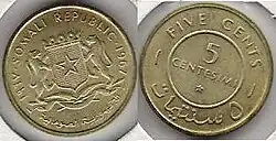 Le shilling somalien (symbole monétaire : Sh.So. ; en somali : shilin ; en arabe : شلن ; code ISO : SOS) est la devise officielle de la Somalie depuis 1962, il est divisé en cent senti ou centesimi ou cents, selon la norme ISO 4217 (liste des codes des monnaies).