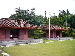 Trois stèles commémoratives se trouvent sur le site : l'une dédiée au temple confucéen de Chūzan érigé au XVIIe siècle comme cadeau de l'empereur Kangxi, l'autre à Sai On, historien, officiel, réformateur et régent royal au moment de la construction du temple, et la dernière à Tei Junsoku, magistrat de Kume qui fonda l'école meirindō.