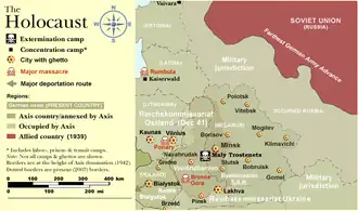 - (en) Cet article est partiellement ou en totalité issu de l’article de Wikipédia en anglais intitulé « The Holocaust in Belarus » (voir la liste des auteurs).