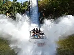 Perilous Plunge à Knott's Berry Farm est le Shoot the Chute le plus raide au monde. La descente est haute de 35 mètres, présentant un angle de 77,8 degrés. C'est également la première attraction aquatique à utiliser un frein électromagnétique ajustable, contrôlant ainsi la quantité d'eau projetée[3].