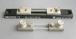 - ↑ (en) « Fiche technique d'un shunt pour fort courant continu, Hitec »(Archive.org • Wikiwix • Archive.is • Google • Que faire ?) [PDF], sur hitec-ups.com (consulté le ).