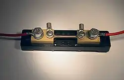 Un shunt est une résistance calibrée et conçue pour la mesure de courants. Pour ce faire on mesure la tension à ses bornes à l'aide d'un voltmètre branché en parallèle, l'utilisation de la loi d'Ohm permet de déduire le courant traversant le shunt[1].
