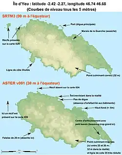 - ↑ Disponibles sur le même site FTP que celui des MNT de la SRTM : ftp://e0srp01u.ecs.nasa.gov/srtm/version2/SWBD/.