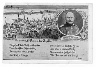 Le siège d'Anvers fut un des épisodes de la Première Guerre mondiale. Il opposa les troupes belges aux troupes allemandes autour d'Anvers dont l'agglomération et les installations portuaires sont défendues par trois ceintures de défense composées de forts. Tout d'abord, les Belges lancent trois attaques d'infanterie à partir du dans le but de tenir l'armée allemande le plus possible à distance de la ville et du port. Utilisant une importante artillerie, les Allemands parviennent en vue de la dernière enceinte fortifiée le et prennent la ville le .