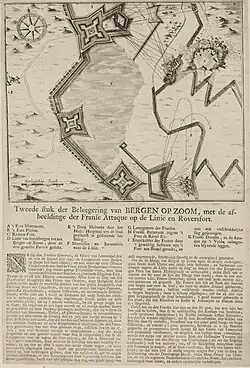 Après la victoire de Lauffeld, le maréchal de Saxe détache une armée sous le commandement du lieutenant-général Ulrich Frédéric Woldemar de Lowendal, expert dans l'art des sièges, pour assiéger Berg-op-Zoom. Bien défendue par la nature, environnée de marécages insalubres et de terrains poldérisés facilement inondables, susceptible de recevoir des renforts et des approvisionnements par voie de mer, la place est réputée imprenable. Alexandre Farnèse en 1588, puis Spinola en 1622 y avaient échoué[1].