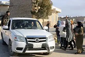- ↑ (en) « In a Kurdish mediation, 10 children and 15 women from the two towns of Nobbol and al- Zahraa are released for a leader in an Islamic army », The Syrian Observatory For Human Rights,