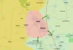 Le , une offensive est lancée au nord d'Alep par 10 000 hommes de l'armée syrienne, des Forces de défense nationale, du Hezbollah libanais, des Brigades Badr, des Kataeb Hezbollah, du Harakat Hezbollah al-Nujaba, de la Brigade des Fatimides, de la Force Al-Qods et d'unités de l'armée iranienne, appuyés par les spetsnaz et l'aviation russe[23],[24],[25]. Le , les assiégés font une sortie et les loyalistes font leur jonction à Maaraset al-Khan[26]. Le siège de Nobl et Zahraa est brisé et les renforts sont accueillis par une foule en liesse[27]. Avec cette avancée, les loyalistes coupent par la même occasion la route d'approvisionnement des rebelles au nord d'Alep et remportent une grande victoire stratégique dans la province[28]. L'offensive fait des centaines de morts dans les deux camps[28],[29], dont 24 soldats de l'armée iranienne et 3 miliciens afghans[25].