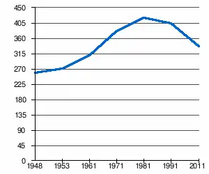 - 1 2 (sq) « Évolution de la population 1948-2011 », sur pop-stat.mashke.org (consulté le ).