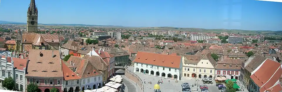 Sibiu (/siˈbiw/ ; en allemand : Hermannstadt ; en hongrois : Nagyszeben /ˈnɒcsɛbɛn/ ; plus rarement Villa Hermani, Civitas Hermanorum, Civitas Cibiniensis, Cibinium, Prepositus Cibiniensis/Scibiniensis, Sabinia en latin[1], et historiquement en français Sébeste ou Ceben[2]) rappelant le nom des montagnes proches : Cibin, est le chef-lieu du județ de Sibiu en Roumanie. Avec une population de 147 245 habitants[3] (2011), c'est une des plus grandes villes transylvaines. Elle est traversée par la petite rivière Cibin, affluent de la rivière Olt, elle-même affluent du Danube.
