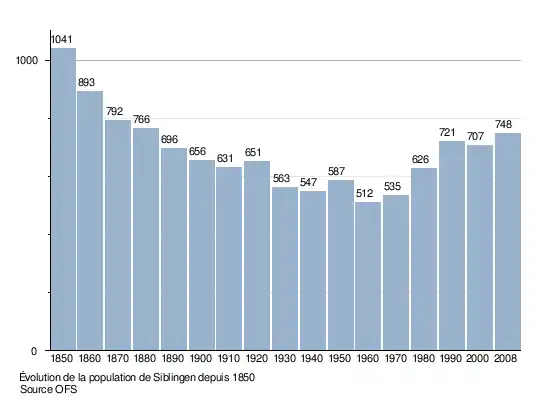 Le graphique suivant résume l'évolution de la population de Siblingen entre 1850 et 2008[3] :