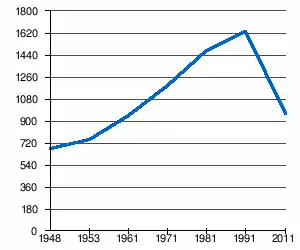 - 1 2 (sq) « Évolution de la population 1948-2011 », sur pop-stat.mashke.org (consulté le ).