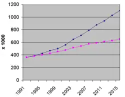 La main d’œuvre est touchée par la maladie, car une part importante de la population active est frappée par le Sida et n'est plus en mesure de travailler. Selon le département d'État des États-Unis, entre 1999 et 2005 le Botswana a perdu environ 17 % de son personnel médical à cause de la maladie[13]. Les projections pour 2020 prévoient une perte de plus de 23 % de la main-d'œuvre agricole[14].