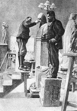 Kraus prenant Zille comme modèle pour le buste du chevalier von Plotho.