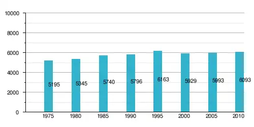 Elle s'étend sur 14,08 km2 et compte 8 768 habitants en 2012.
