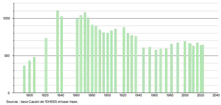 - ↑ Population municipale de référence en vigueur au 1er janvier 2025, millésimée 2022, définie dans les limites territoriales en vigueur au 1er janvier 2024, date de référence statistique : 1er janvier 2022.