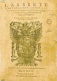 - ↑ Entre le 26 juin 1256 et le 28 août 1265 selon l'un des codex anciens des Partidas. Selon d'autres sources, la période de rédaction varie : 1254 à 1261; 1256 à 1263 et 1251 à 1265. Néanmoins, la plupart s'accordent pour dire que la majeure partie de l'ouvrage est rédigée au plus tard en 1265.