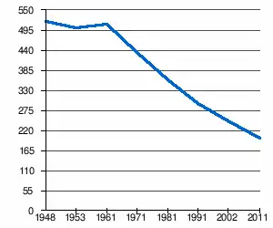 | 522 | 502 | 511 | 434 | 358 | 294 | 247[2] | 199[1] |