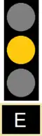 Les signaux d'entrée E possèdent généralement un feu rouge et un feu vert, mais certains signaux placés à l'entrée des stations à forte affluence possèdent un troisième feu de couleur jaune ; ils sont alors nommés signaux d'entrée permissifs[12]. Ils permettent de laisser entrer un train en station alors que le précédent n'a pas totalement dégagé son canton, moyennant le respect d'un TIV « Signal au jaune XX » (XX étant la vitesse, en km/h, à respecter)[12].