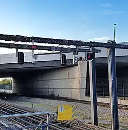 Enfin, on peut trouver des signaux d'espacement repérés seulement par un chiffre, surnommés « overlap » (chevauchement). Ceux-ci équipent les voies utilisées pour effectuer la manœuvre de changement de voies principales dans certains terminus et sont systématiquement précédés d'un répétiteur[14].