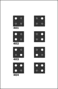 - Par un chiffre lumineux sous le signal principal indiquant le numéro de la voie. La voie numéro une étant toujours celle qui se situe du côté du bâtiment voyageur (ou BV dans le jargon ferroviaire). Ce mode n'est utilisable qu'avec le système L, car avec le système N emploie déjà un chiffre pour indiquer l'exécution de vitesse. Une telle situation est présentée dans la partie gauche de l'image ci-contre.
