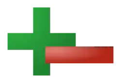 Le signe arithmétique est souvent noté à l'aide des signes algébriques « + » et « − » (plus et moins), notamment dans un tableau de signe. En effet, un nombre écrit en chiffres est précédé du signe « − » s'il est négatif. Mais cette notation peut engendrer des confusions[2] lorsque les signes plus et moins sont utilisés comme opérateurs. Notamment, l'expression −a est positive, si a est négatif.