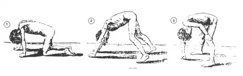 Il s'apparente au signe du tabouret, qui décrit la même symptomatologie depuis la position assise sur un tabouret[3].