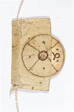 Les signets à roulette (ou à curseur[1]) sont attachés à une ficelle ou un ruban, le long duquel un marqueur peut être glissé de haut en bas pour marquer un niveau précis sur la page[2]. Un disque rotatif en parchemin attaché au marqueur comporte des numéros qui permettent de désigner l’une des colonnes des deux pages entre lesquelles le signet est placé[3].
