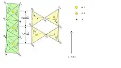 La sillimanite est constituée de chaînes parallèles d'octaèdres AlO6 et de tétraèdres alternativement SiO4 et AlO4.