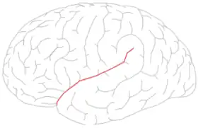 À son origine antérieure, il délimite le lobe temporal (en bas) du lobe frontal (au-dessus). Après une course ininterrompue, il se termine en arrière par une bifurcation en deux sillons : une petite branche orientée vers le bas, et une autre vers le haut, nommée la branche ascendante de Sylvius (ou branche verticale). Le point de bifurcation de ces deux branches marque la limite entre le lobe pariétal en haut et le lobe temporal en bas.